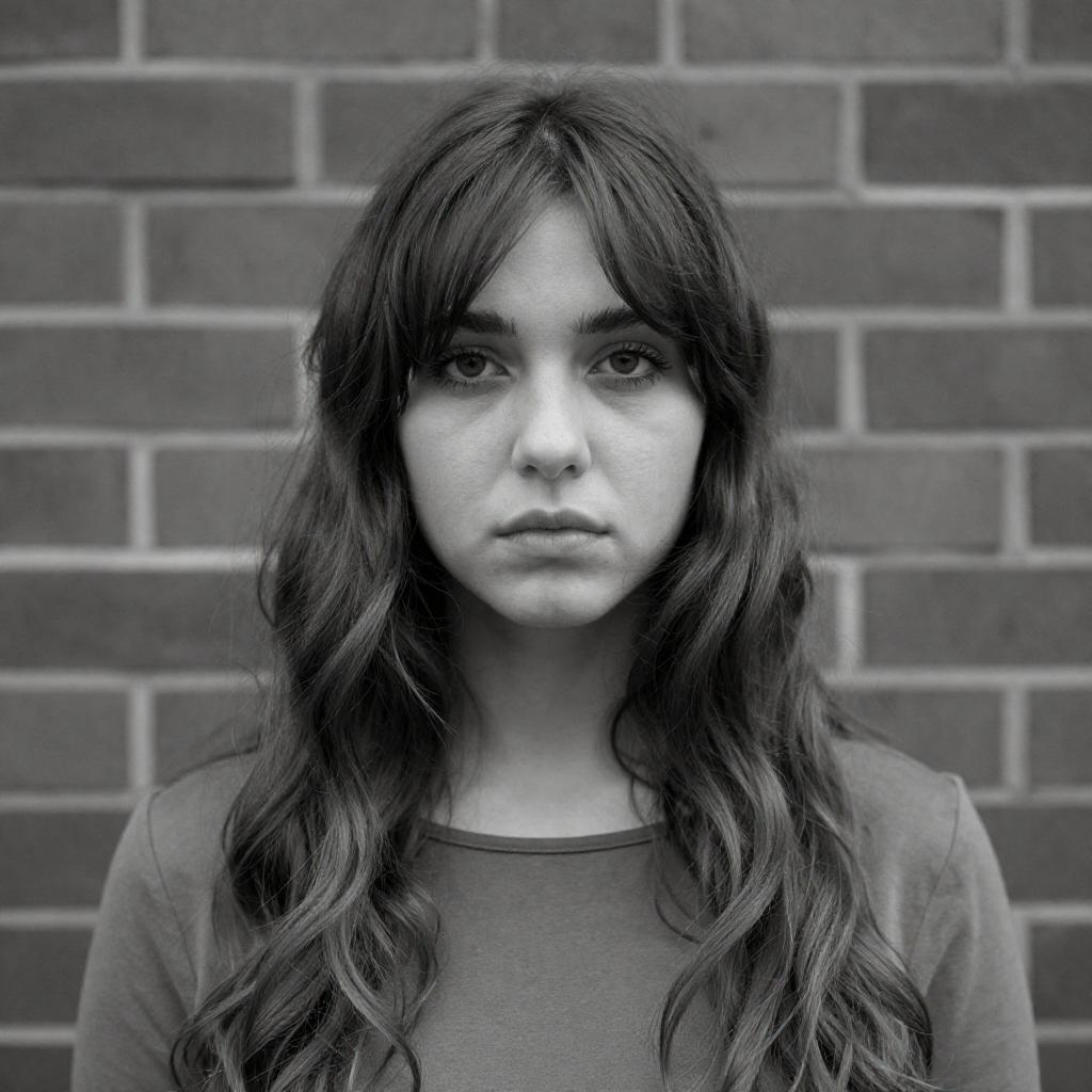 Black and White Portrait of Young Woman with Headband