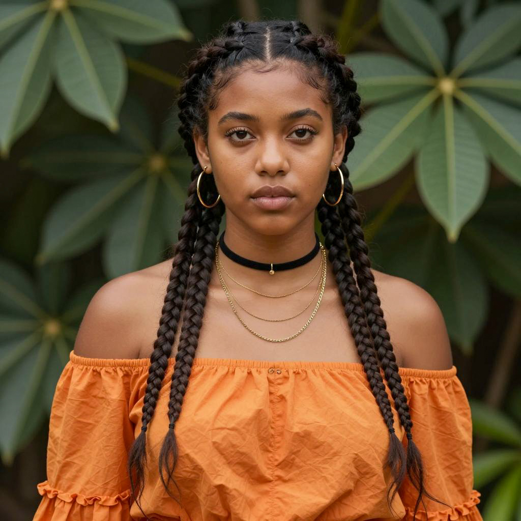 Young Woman with Braided Hair and Beads