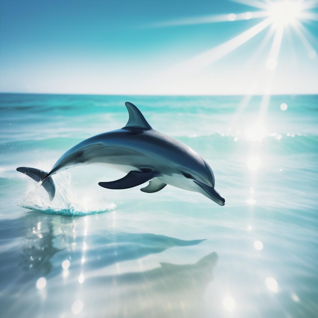 Blurry Polaroid of a playful dolphin standing in a sparkling ocean, realistic lighting, 4K Ultra HD.