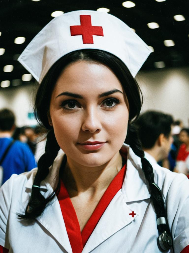 Woman in Nurse Costume, candid portrait at cosplay convention