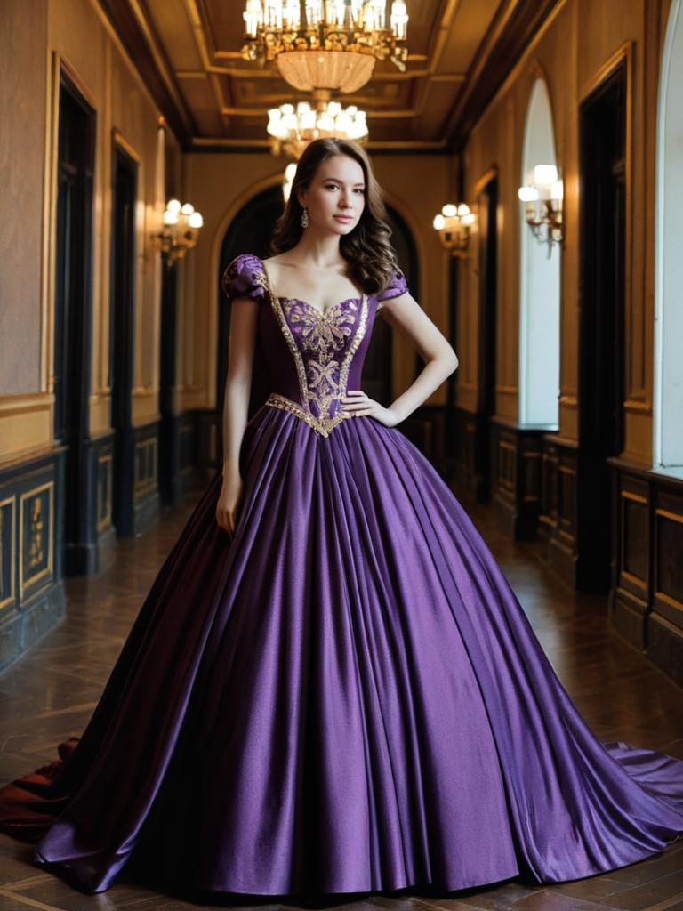 Luxury Cinderella Dress, woman in a blue dress standing in front of a castle --sref 1389