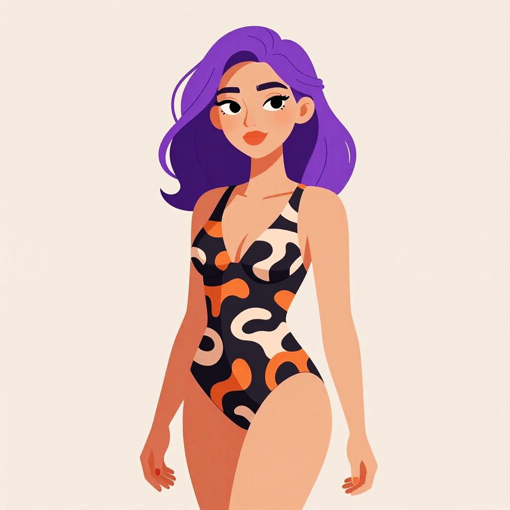 Stylish Woman in Abstract Print Swimsuit