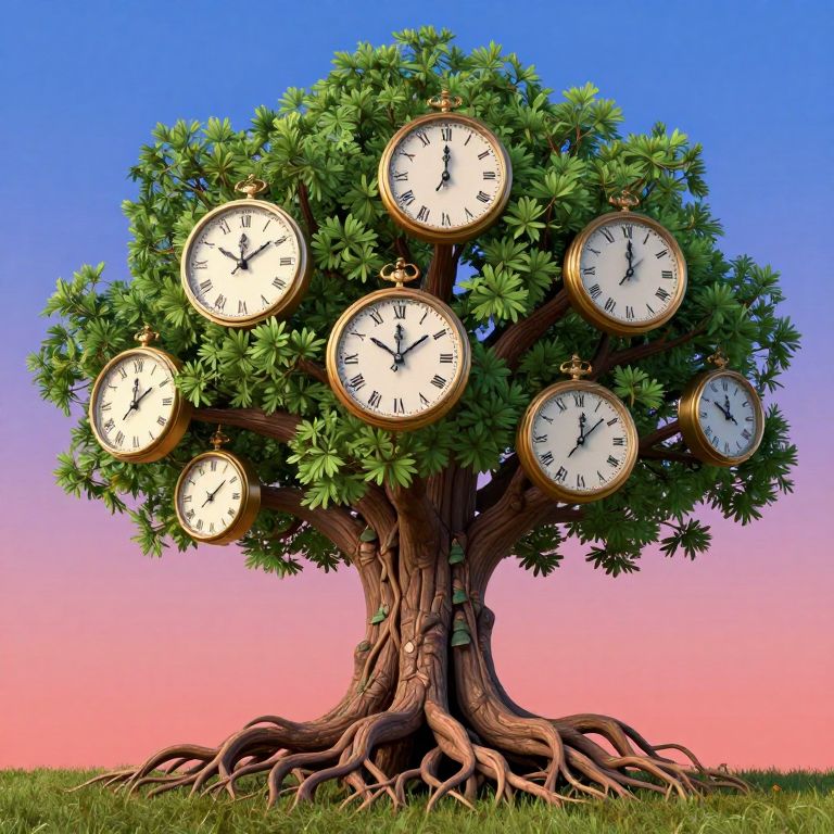Apples grow entirely out of top hats in a circus tent sky, and the fruits fall silently upward while juggling clocks catch themselves in midair.