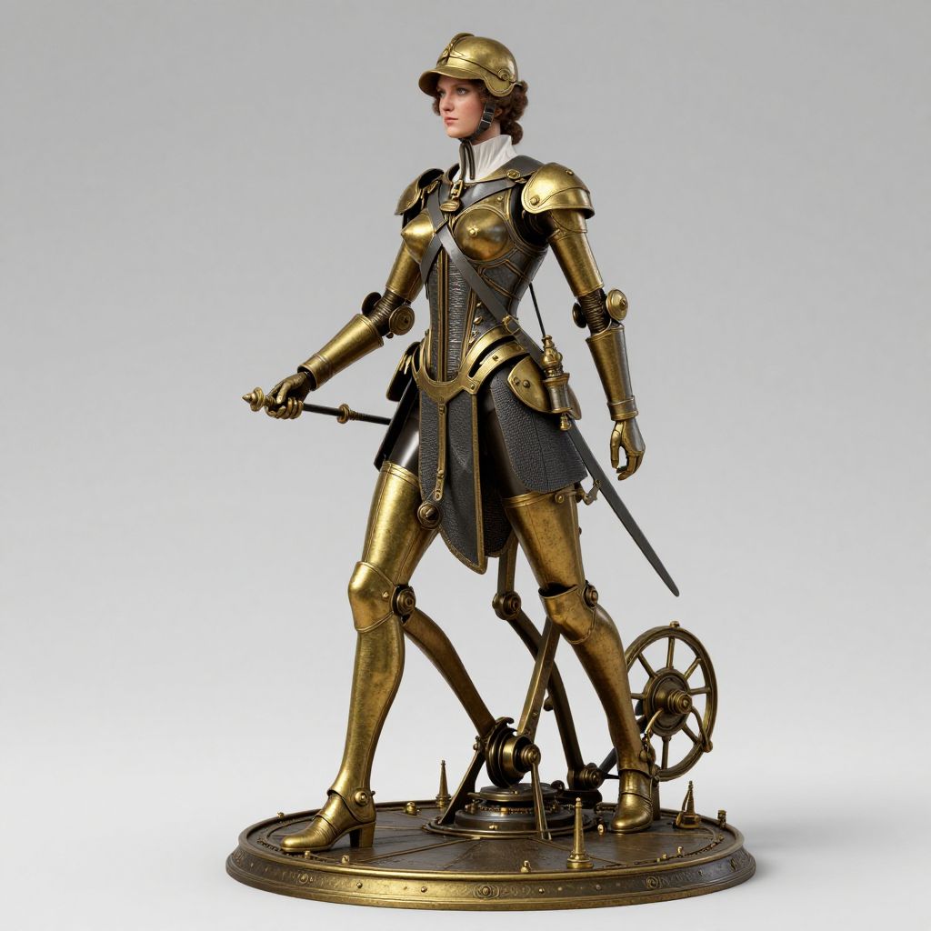 A mechanical woman designed for war, victorian design, brass and iron, imperial, highly detailed, intricate, realistic, soft lighting, artemisia gentileschi, artstation, hd