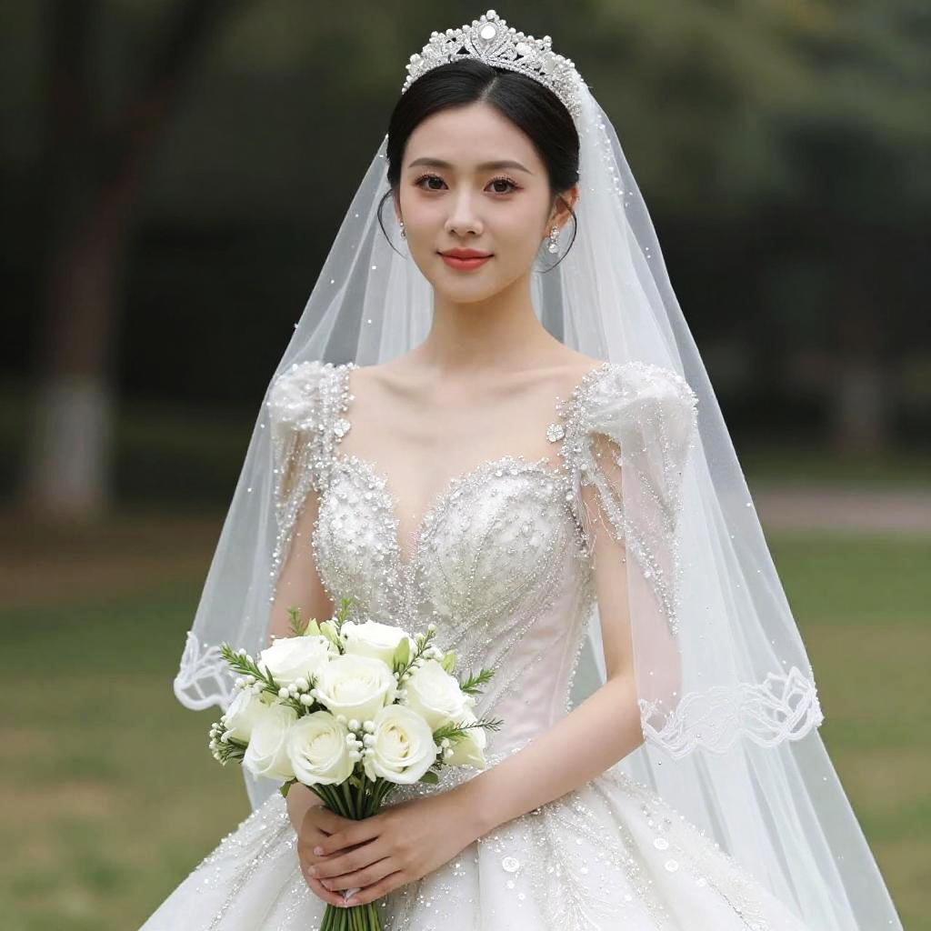 Story, bride posing under a fairy tale, elaborate scene style, glitter, orange, realistic style, 8k, exposure blend, medium shot, bokeh, (hdr:1.4), high contrast, (cinematic, orange and white film), (muted colors, dim colors, soothing tones:1.3), low saturation, (hyperdetailed:1.2)