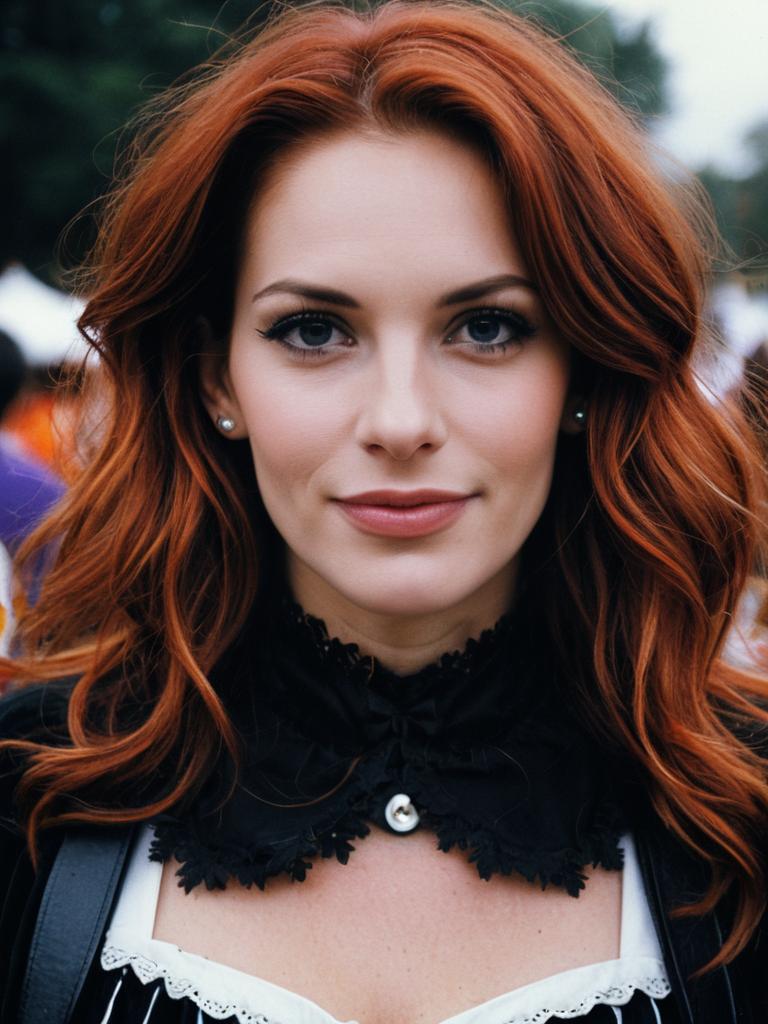 Woman in Julia Roberts Halloween costume, cosplay festival portrait, realistic detail