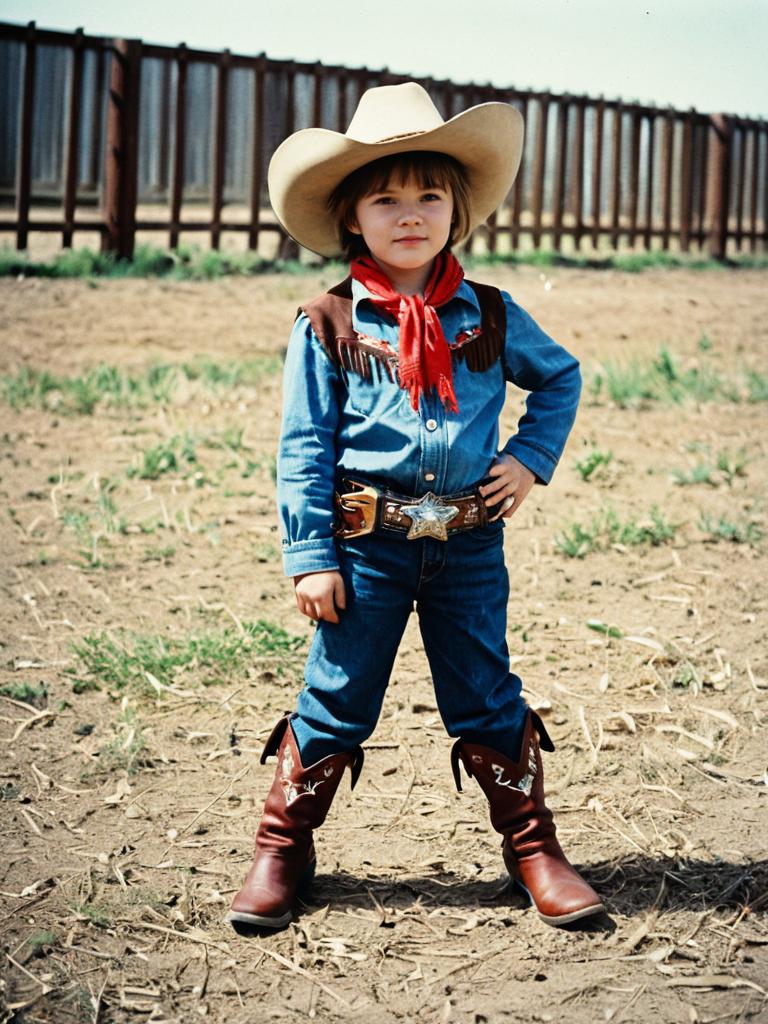 Child in Cowboy Costume, full-body cosplay photo with hat and boots