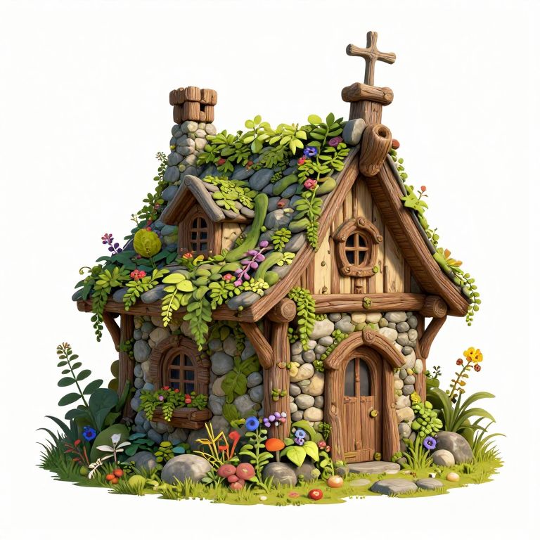 Magical Stone and Wood Cottage Illustration
