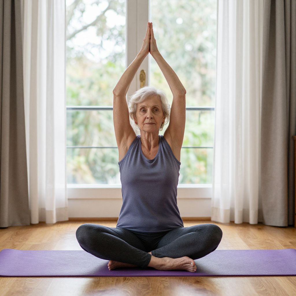 Elderly Woman Yoga in Serene Room