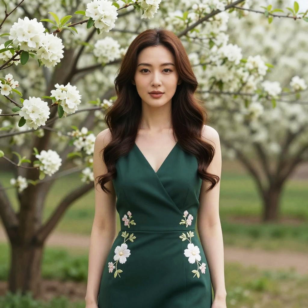 Photograph of a young woman with dark hair, wearing a white sleeveless dress and tan heels, sitting on a beach bench with a beige handbag