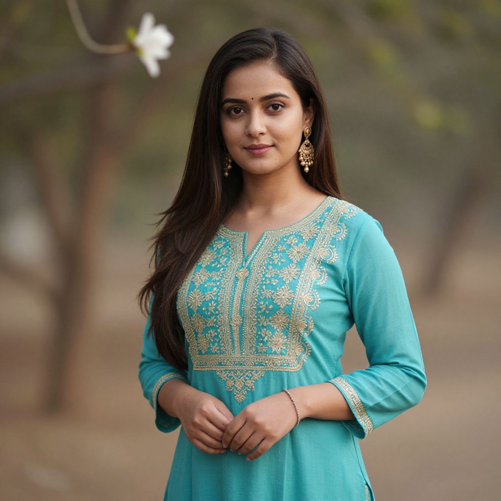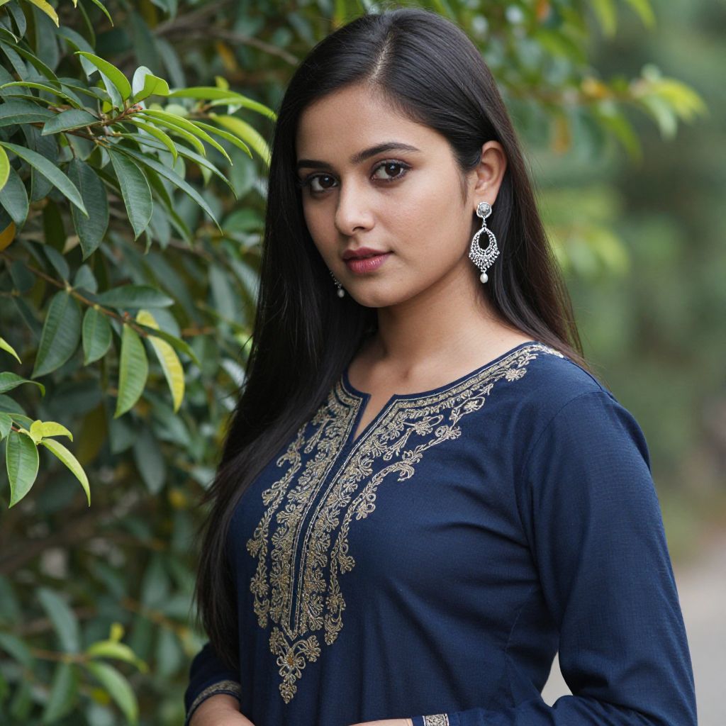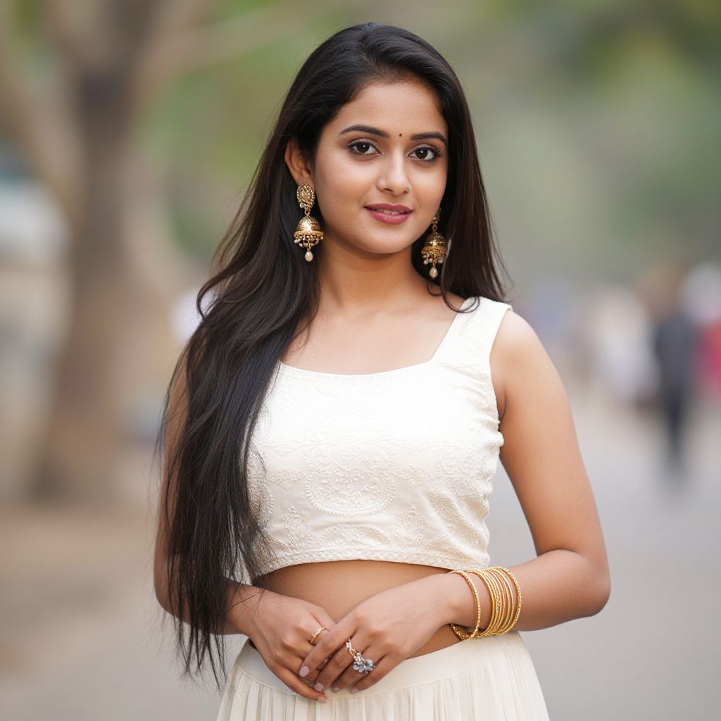 "afghani salwar kurti, 1girl, solo, long hair, dress, outdoors, flower, watch, white dress, realistic, looking at viewer, black hair, blurry, jewelry, blurry background, wristwatch, brown hair, standing Realistic photo of casual sexy person with pretty face"