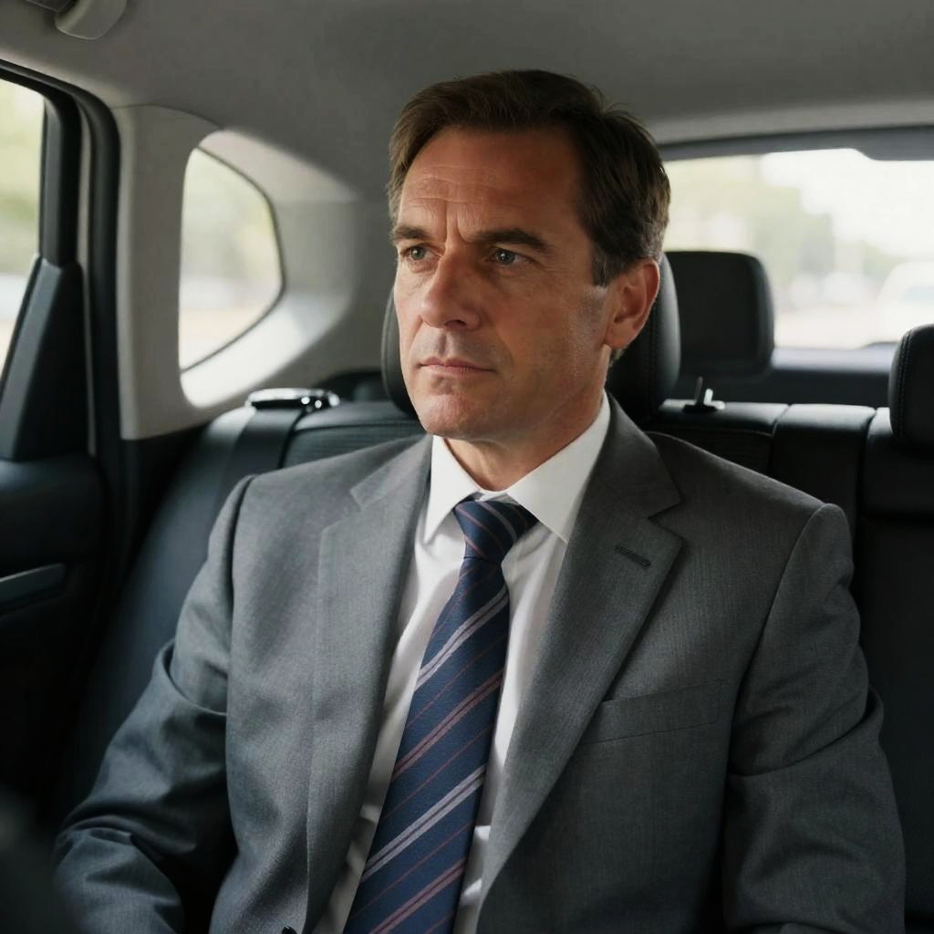 Serious Man in Orange Convertible Portrait