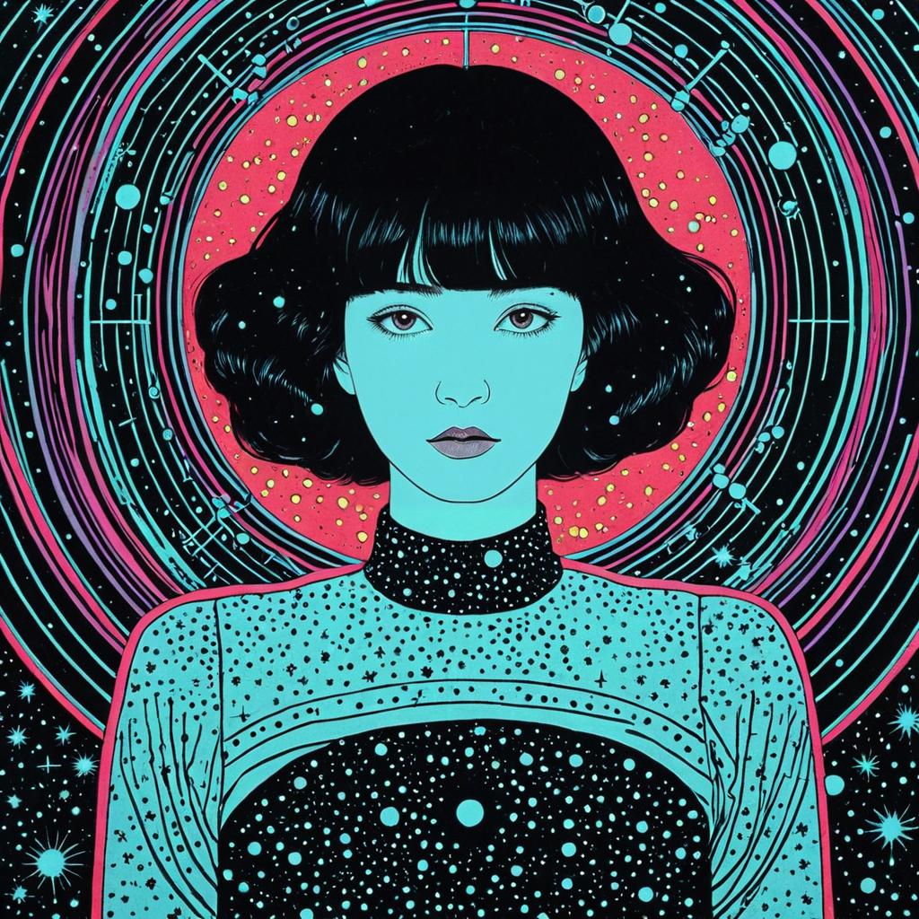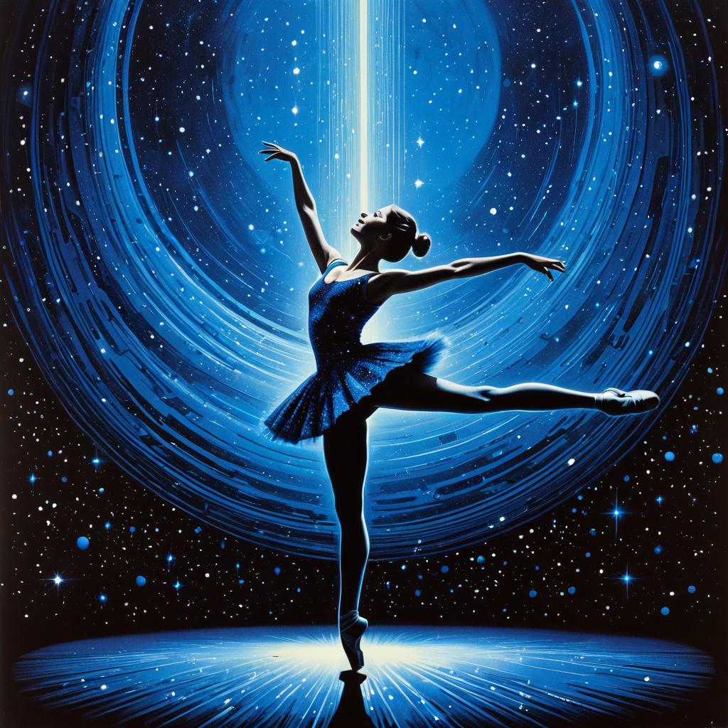 Cosmic girl, galactic ballet, electric blue hues, highly detailed, cinematic, by Tim White, Eyvind Earle