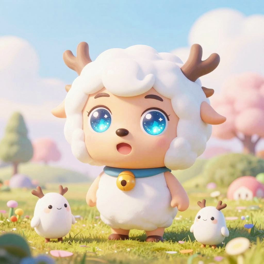 Whimsical AI chibi generator crafting playful, miniature characters with large sparkling eyes, tiny bodies, and expressive faces, set in dreamy soft pastel landscapes, detailed textures and lively brush strokes, digital anime-inspired art.