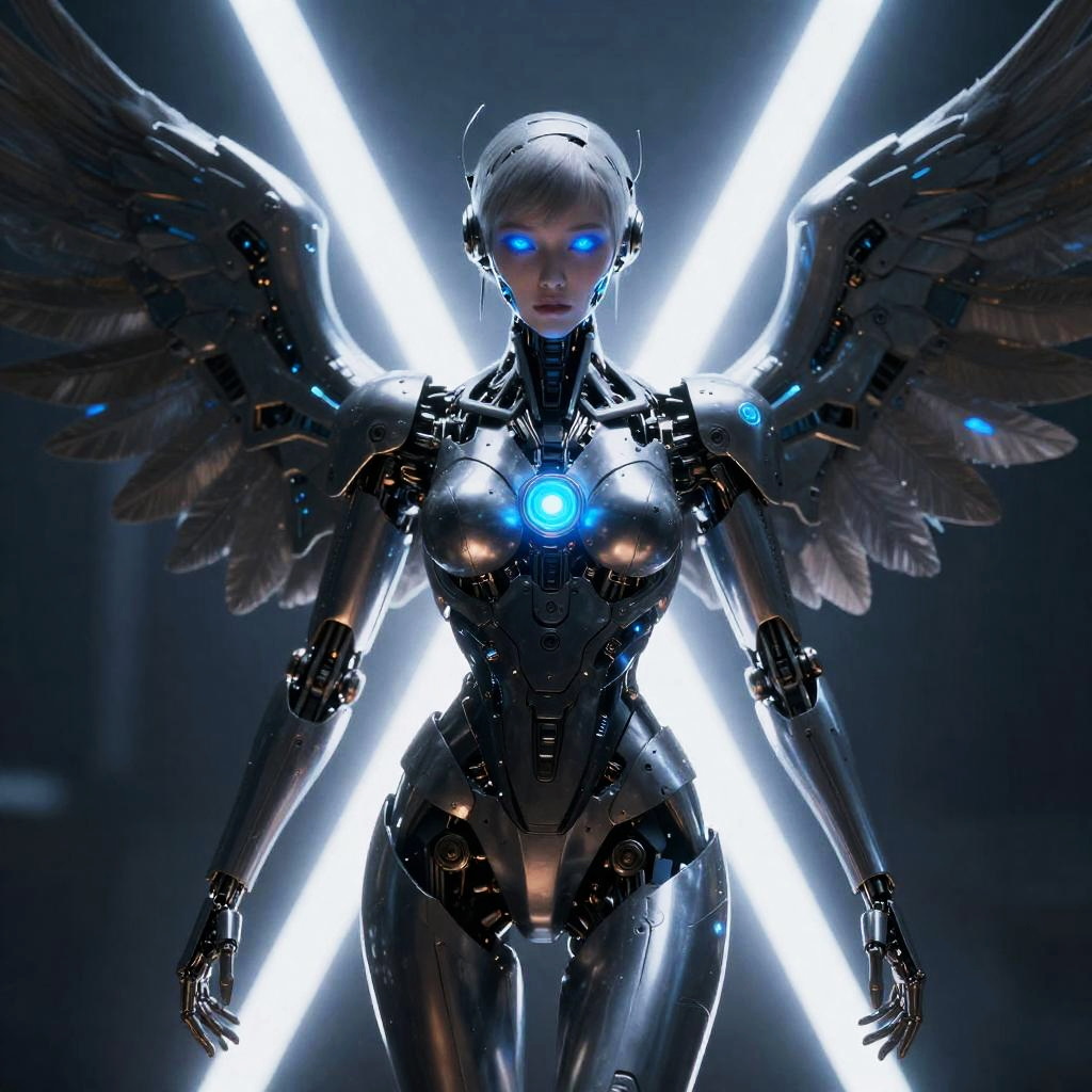 Intricate Robotic Angel with Luminous Halo