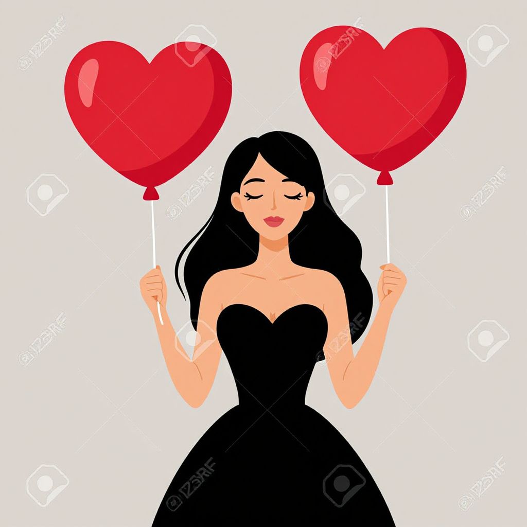 Download Beautiful Woman Holds Heart Balloons Stock Illustration - Image: 28939653