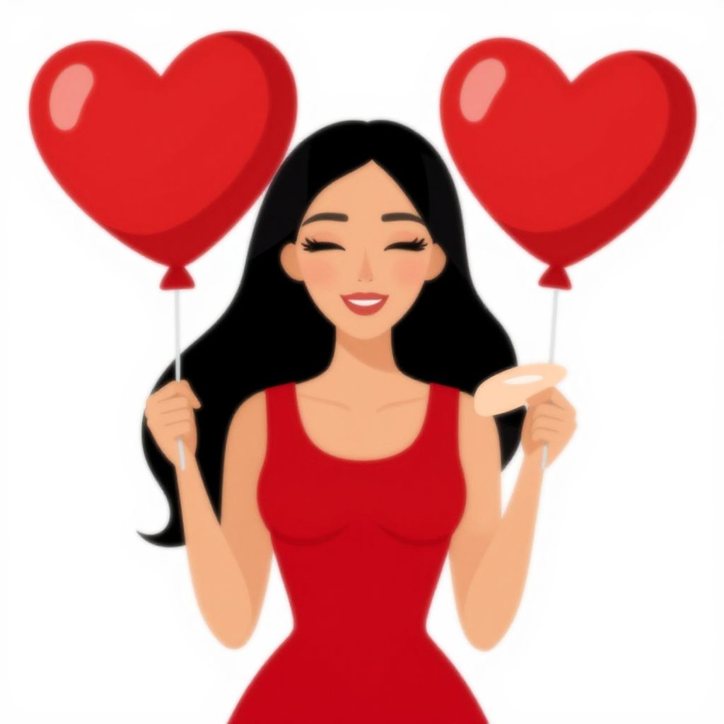 Beautiful Woman Holding Heart Balloons