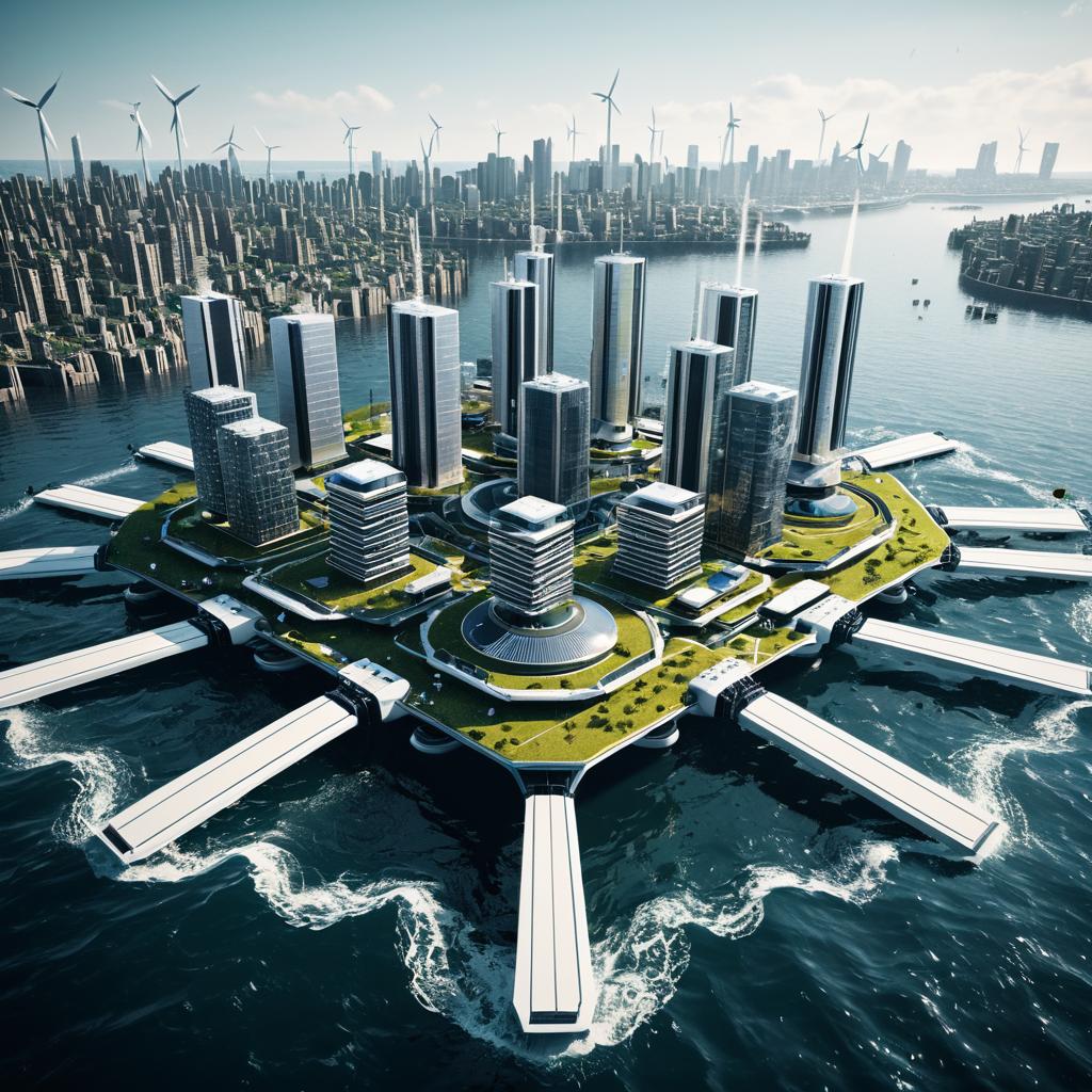 Industrial waterfront with hydrogen fuel cell power plants, high-tech infrastructure, renewable energy sources, ultra-detailed, 3D rendering, dynamic lighting