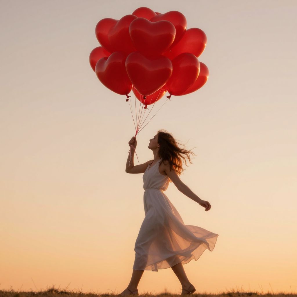 Woman with Heart-Shaped Balloons of Love