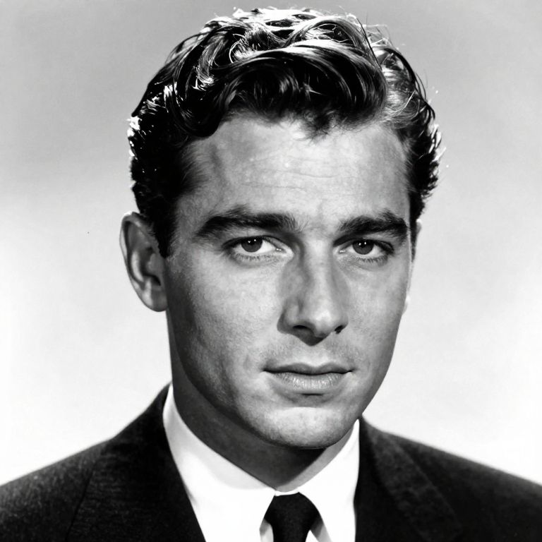Stunning black and white portrait of a handsome young actor by kenneth willardt. glossy hair. face only. hollywood movie star. vintage glamour. suit and tie.