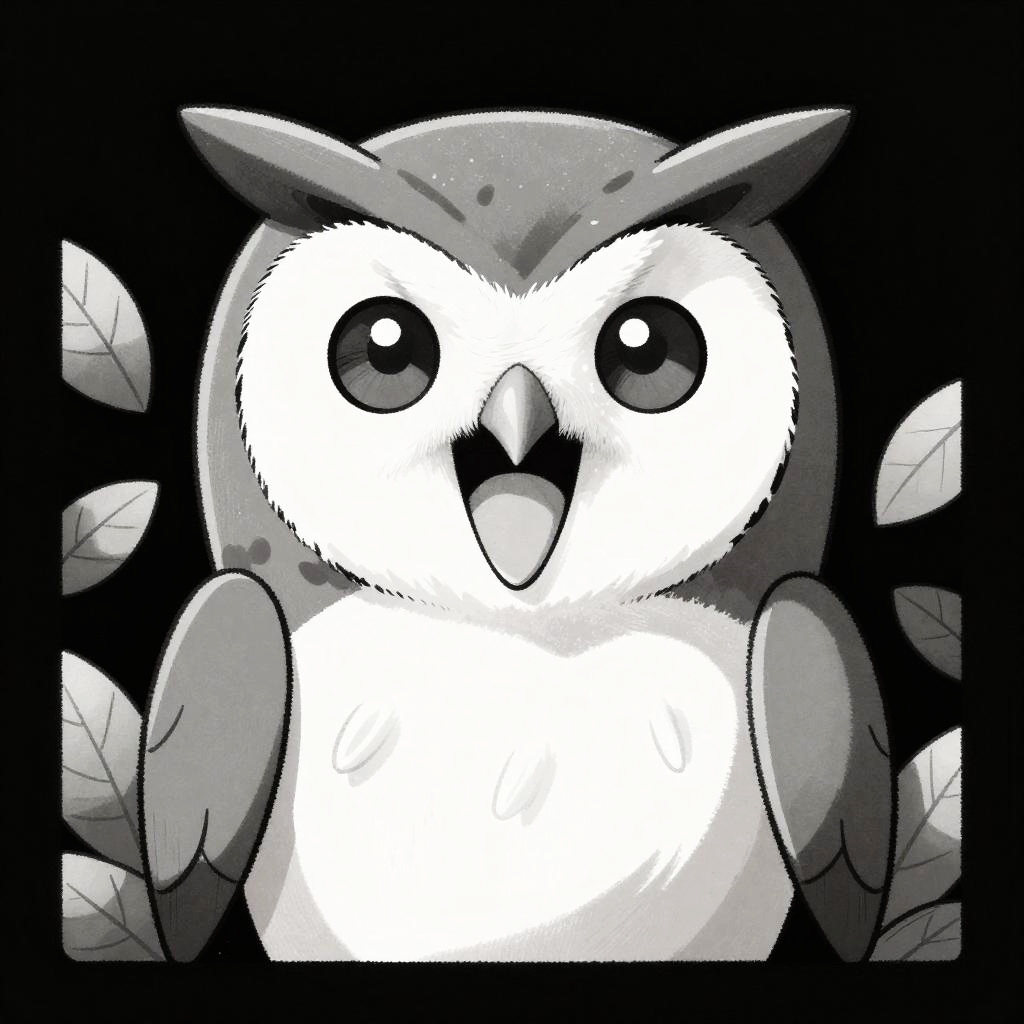 Monochrome Cartoon Owl with Open Mouth