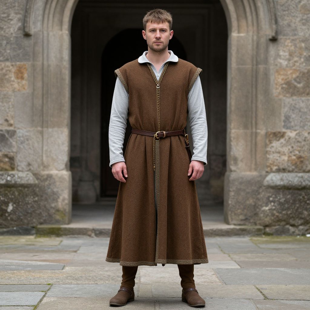 Male Medieval Clothing, man in medieval clothing standing in front of a stone building