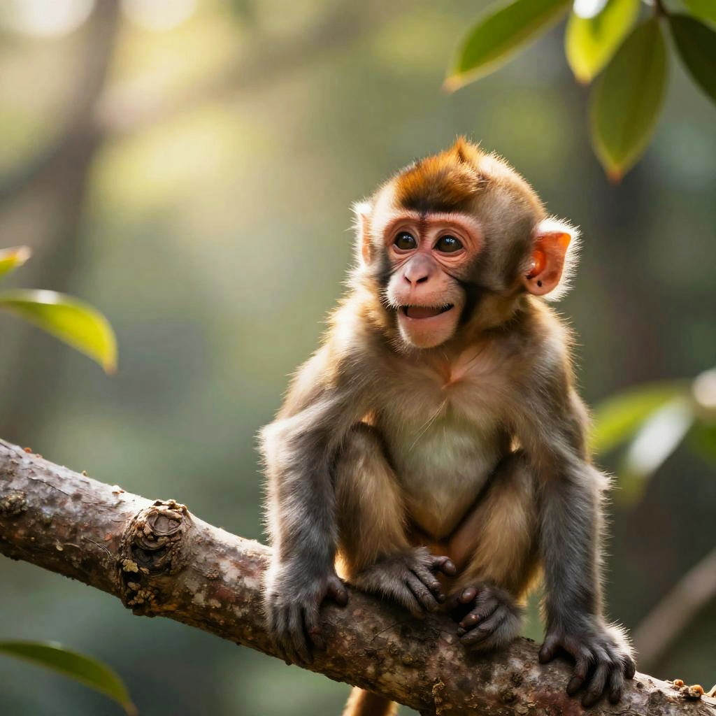 Monkey fried chicken, a fantasy scene of a jungle monkey cooking fried chicken over an open fire, lush green forest surroundings, warm lighting, ultra realistic with cinematic detail