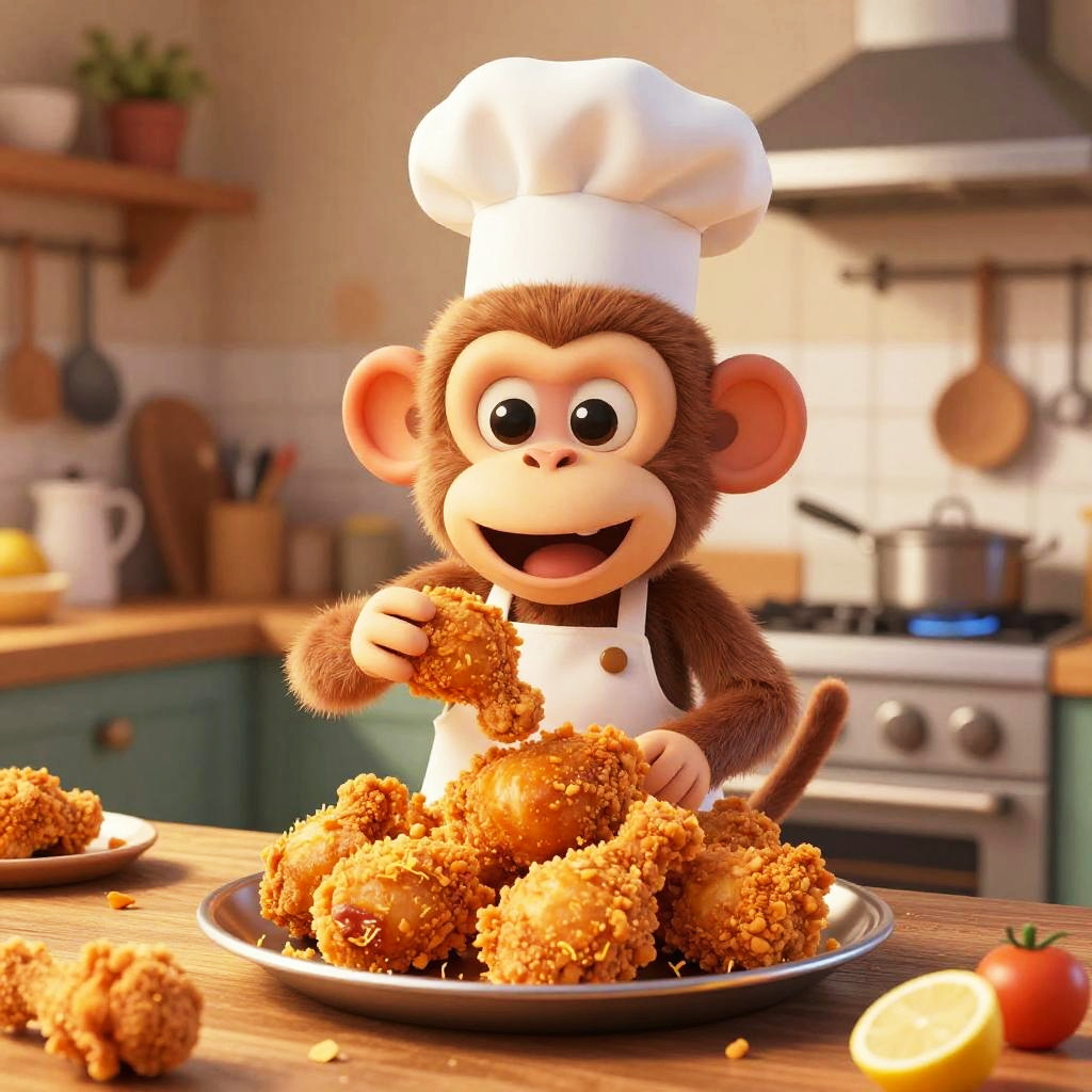 Jungle Monkey Cooking Fried Chicken
