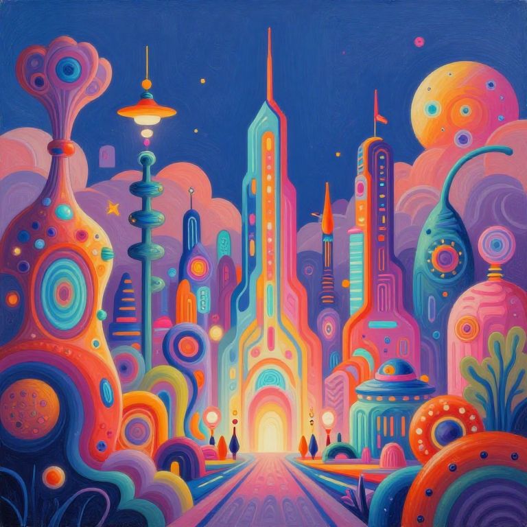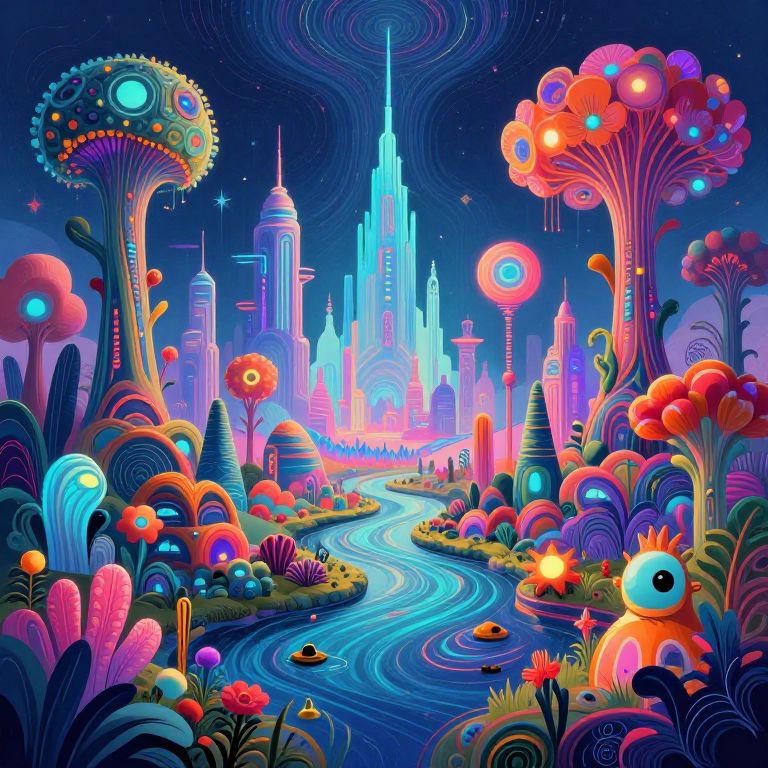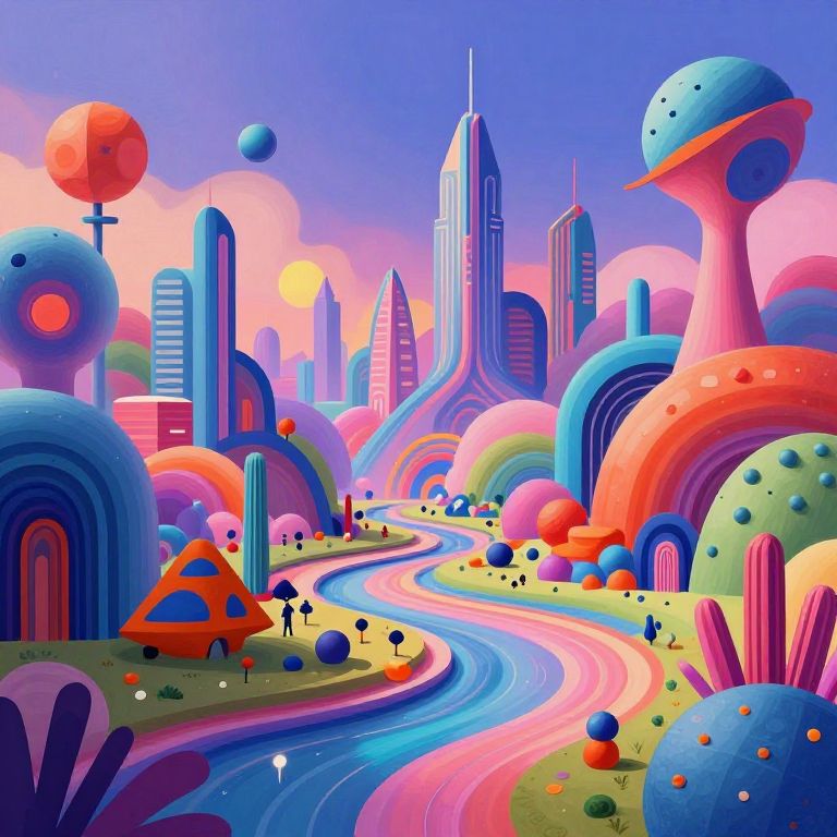 AI art best creations blending vibrant colors and surreal abstract forms, showcasing futuristic landscapes with intricate digital brushwork, glowing neon highlights, and a harmonious blend of organic and mechanical elements, ultra-detailed and immersive.