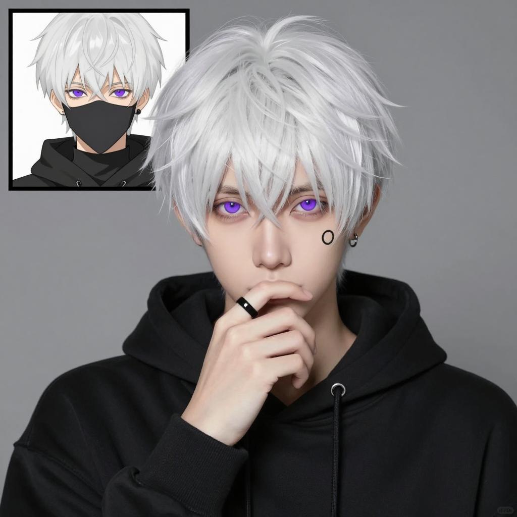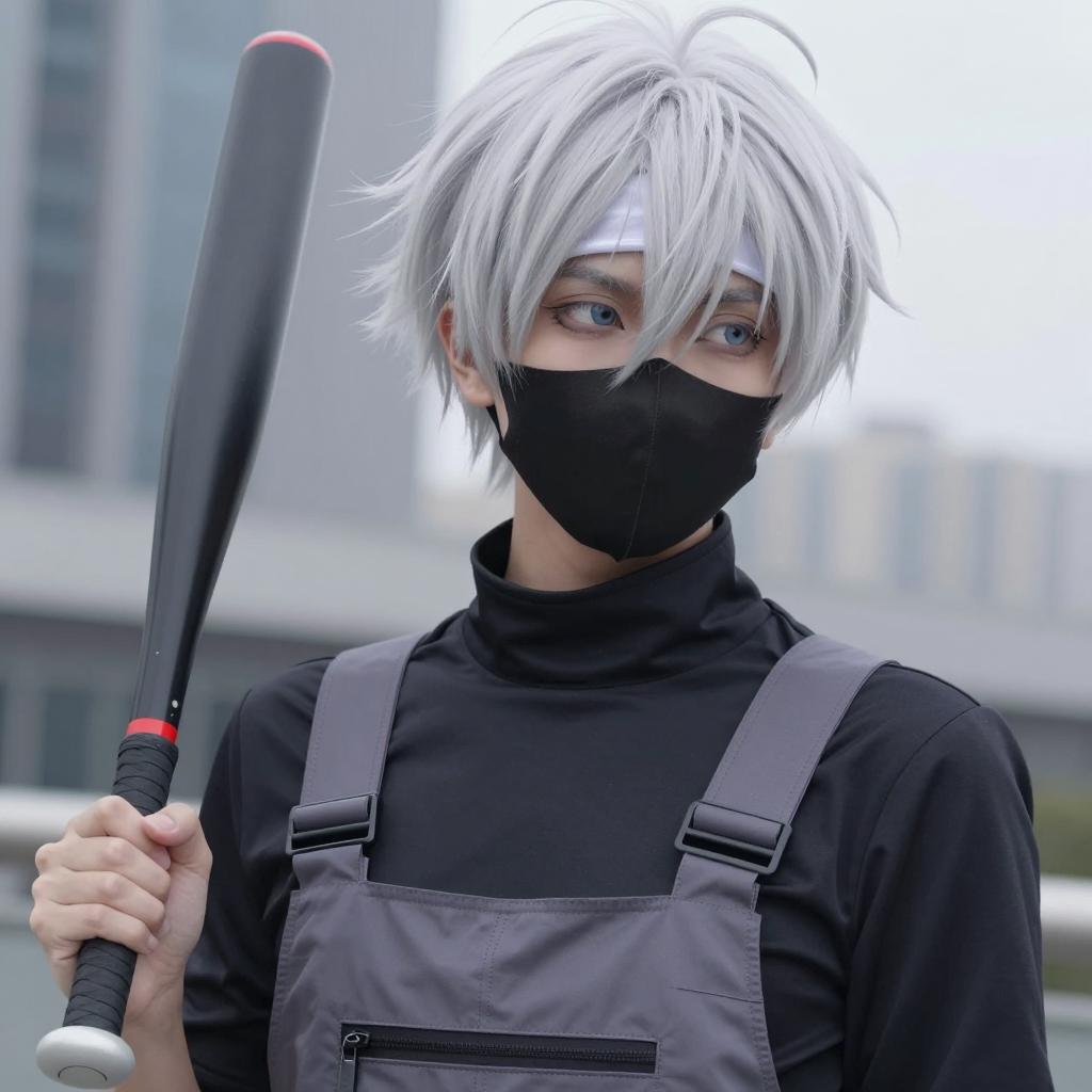 Cosplayer with White Hair and Red Face Markings
