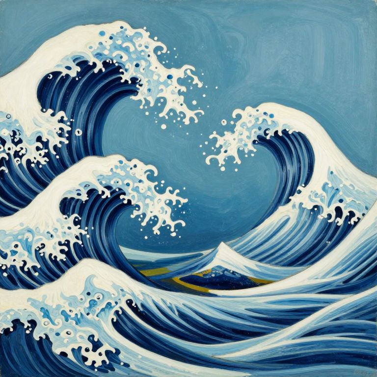 A stylized artwork depicting waves in a swirling, abstract manner reminiscent of Heather Brown's art style.