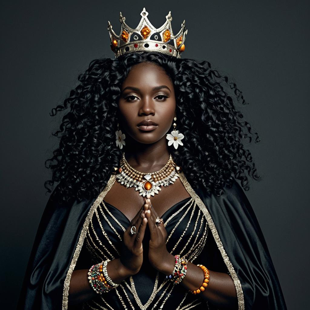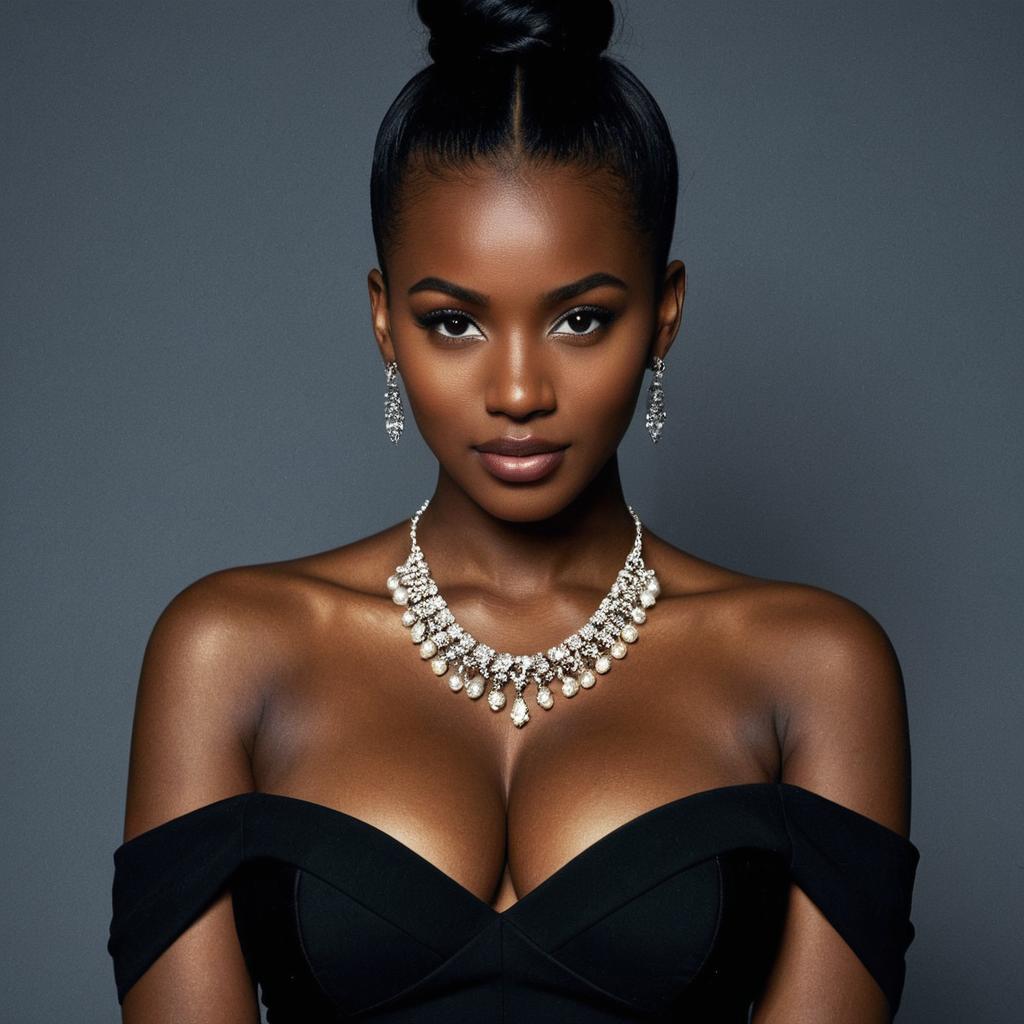 Maat goddess costume,1girl, solo, jewelry, wings, black hair, earrings, long hair, black wings, bracelet, looking at viewer, feathered wings, dark skin, dark-skinned female, necklace