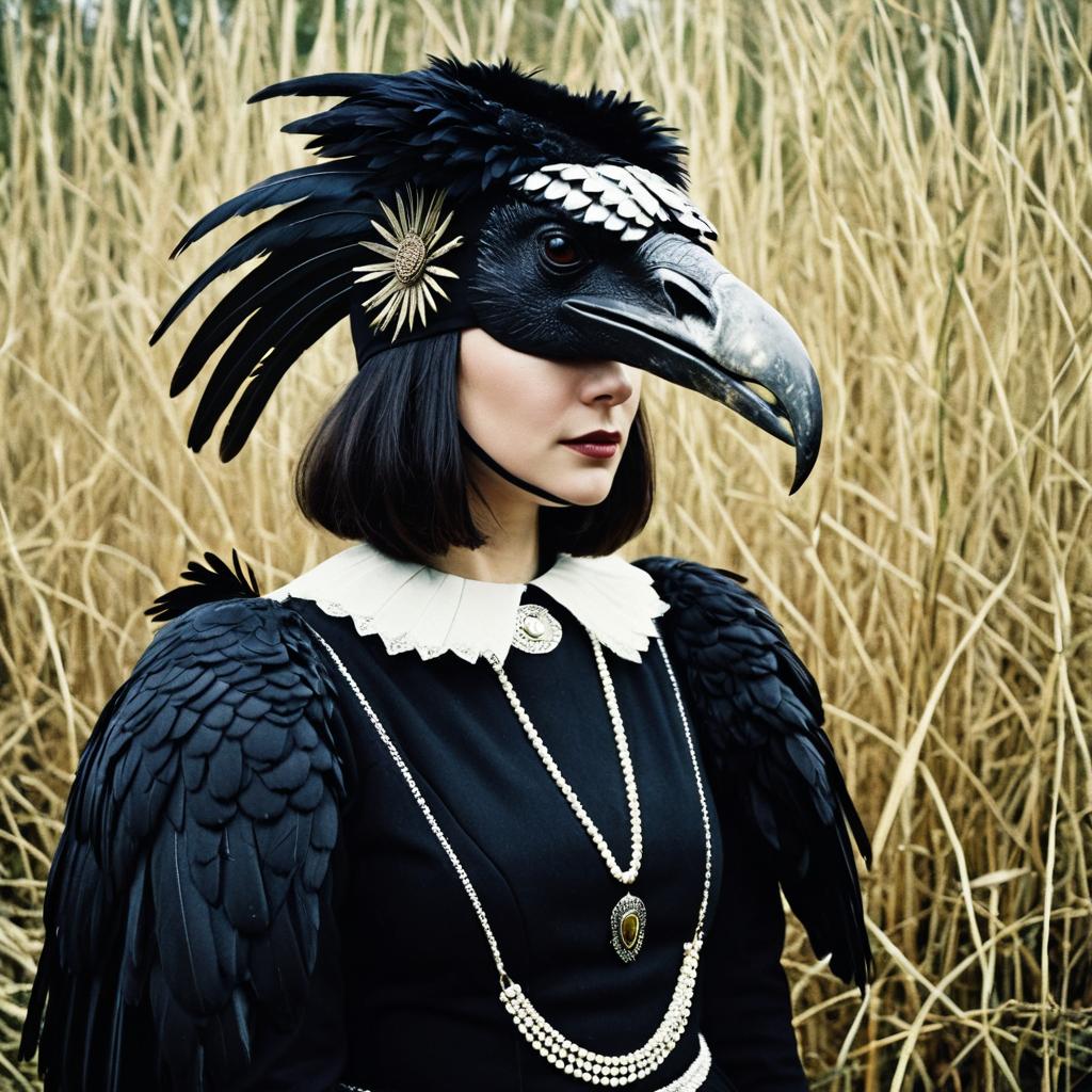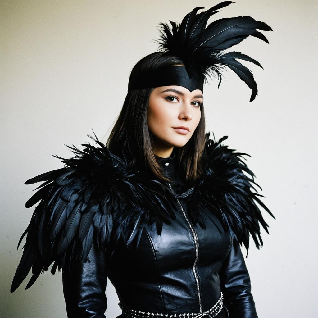 Woman in Black Feathered Costume
