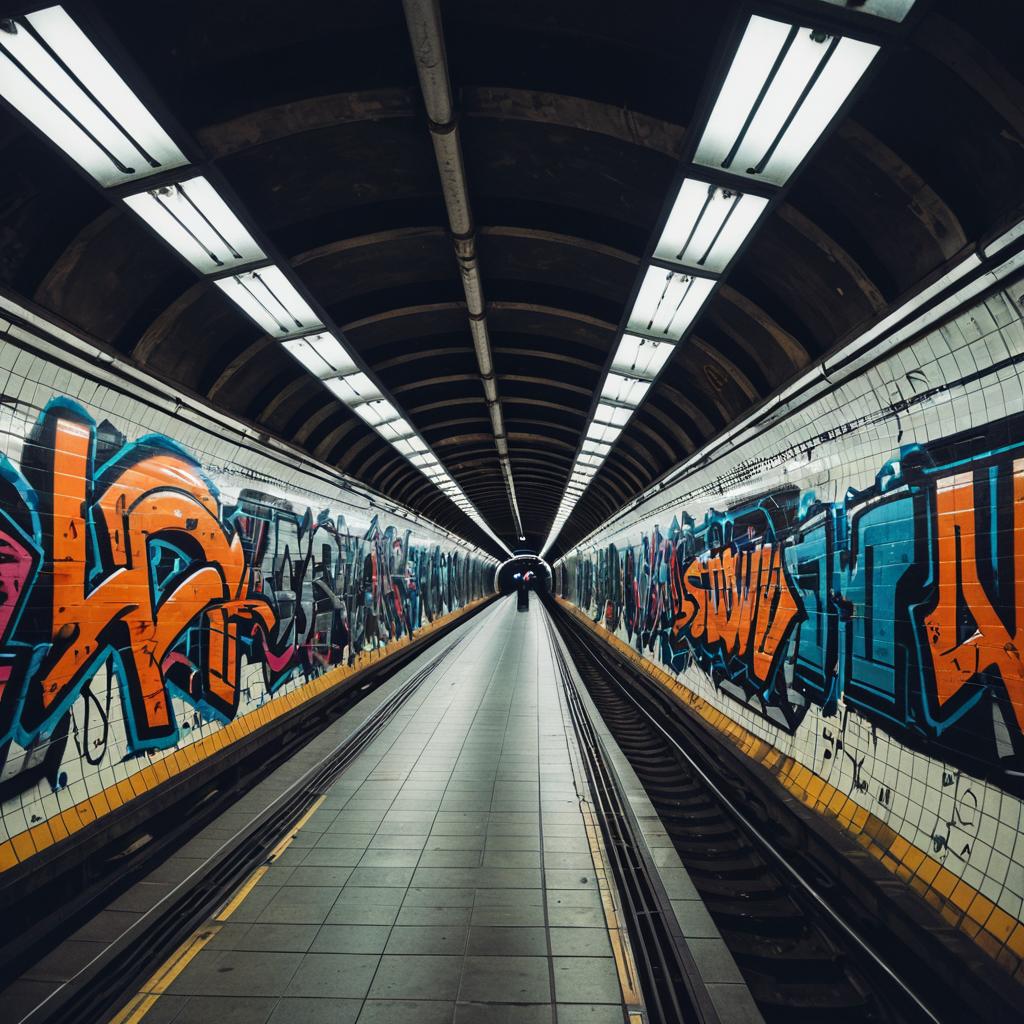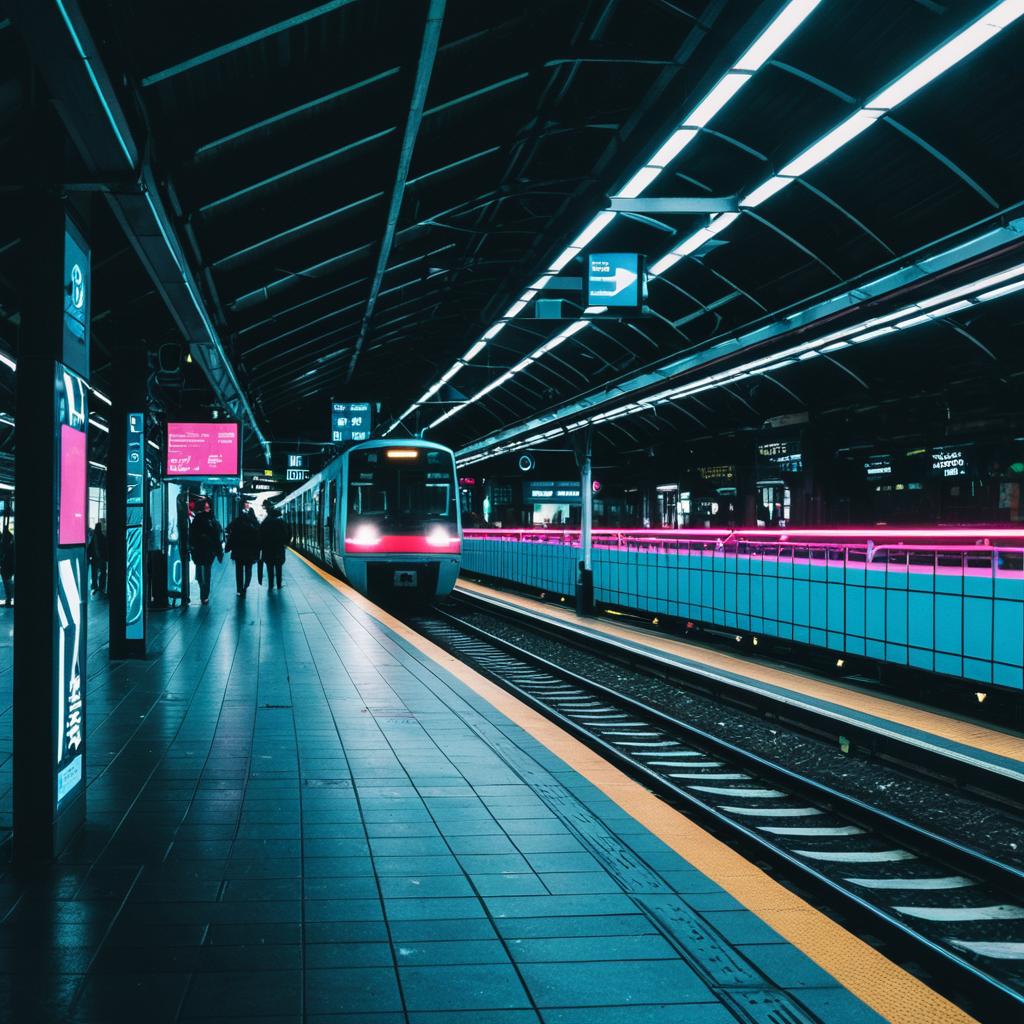 Cyberpunk Train Station with Neon Lights