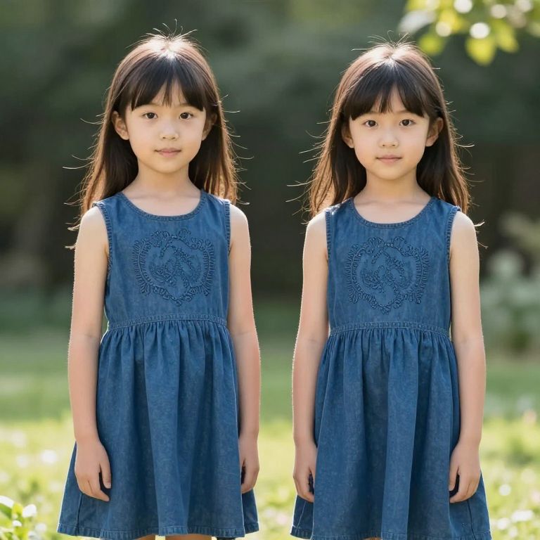 Shining Twins in Blue Dresses