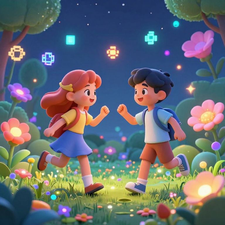 Calvin and Hobbes AI versions sharing a whimsical adventure in a surreal digital forest, blending classic cartoon style with advanced AI holographic effects