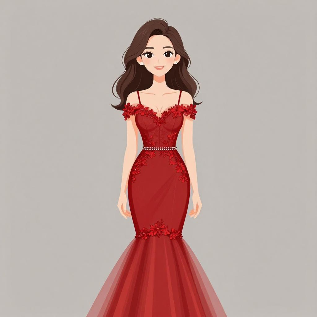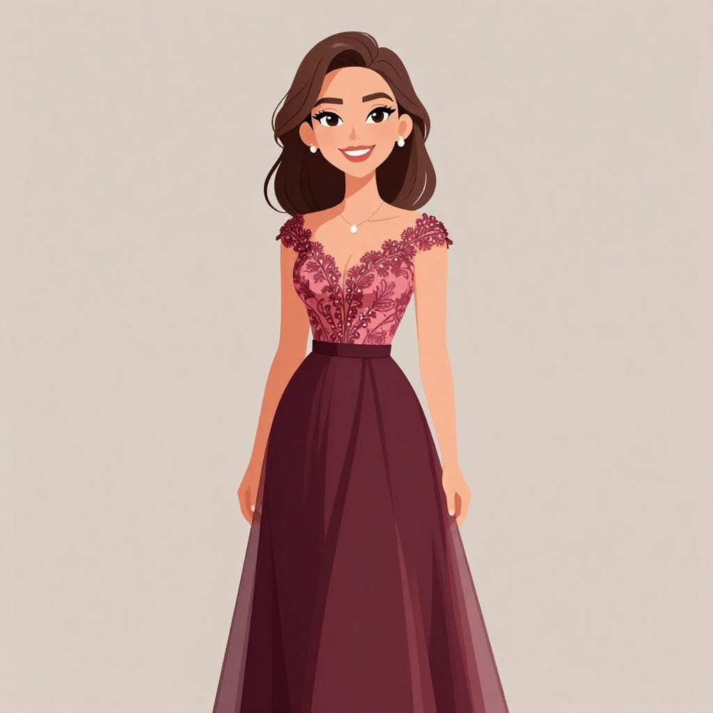 Elegant Woman in Burgundy Evening Gown