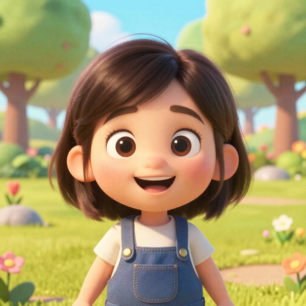Disney AI filter transforming a portrait into a vibrant, whimsical animation style with large sparkling eyes and soft pastel colors, set in a magical forest background, detailed digital art, high resolution