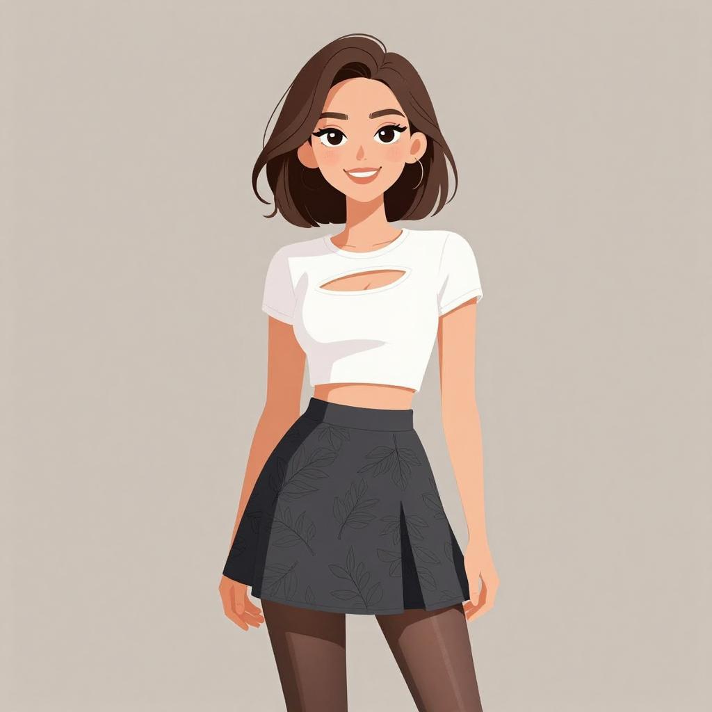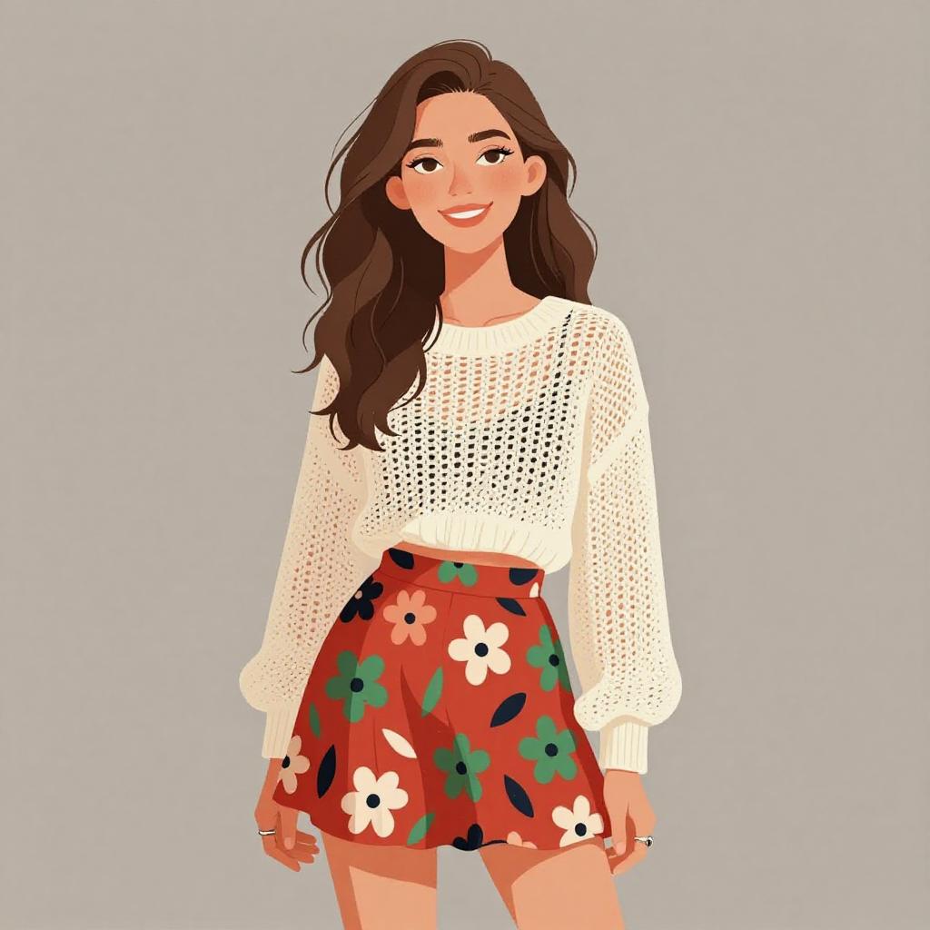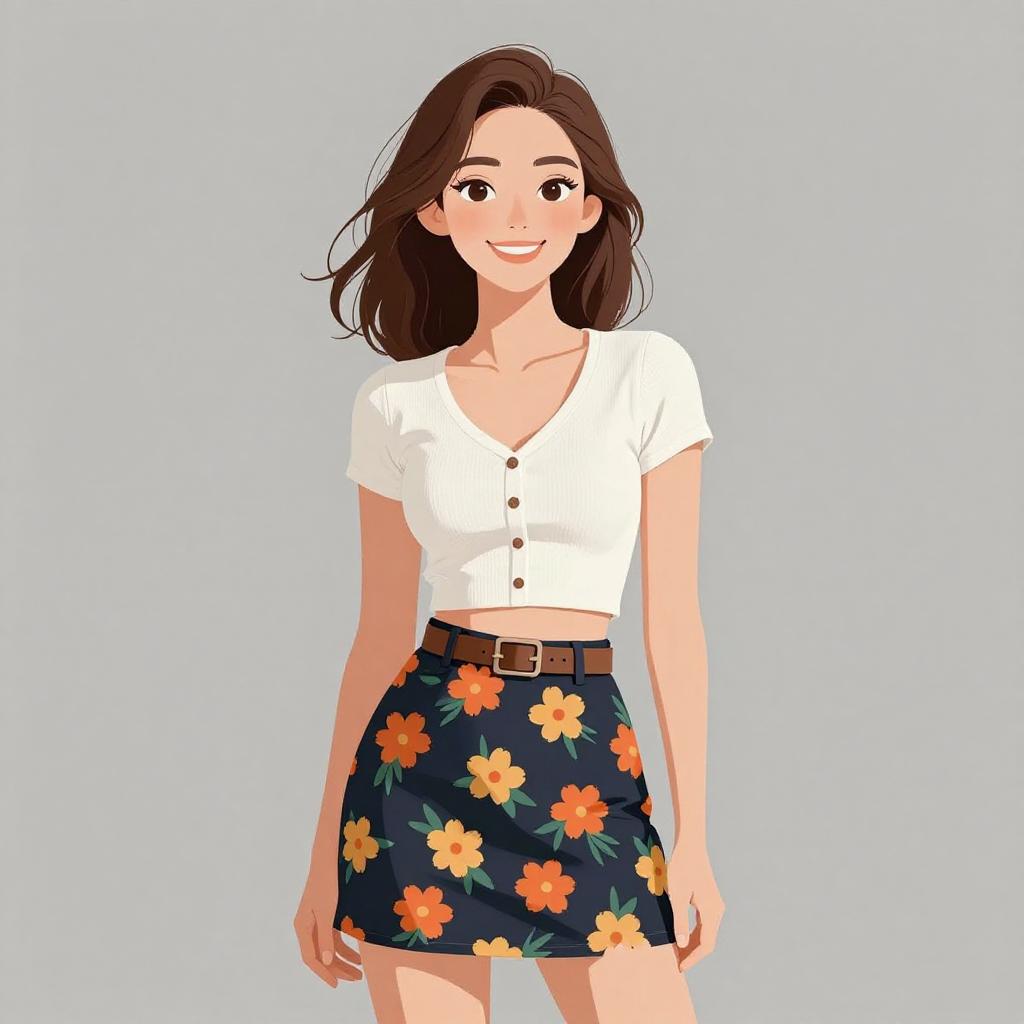 Chic Smiling Woman in Floral Skirt
