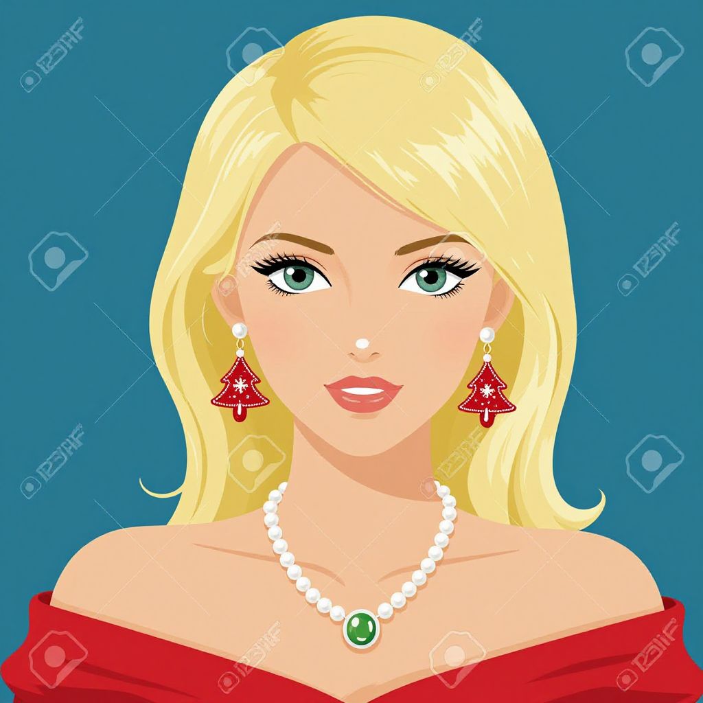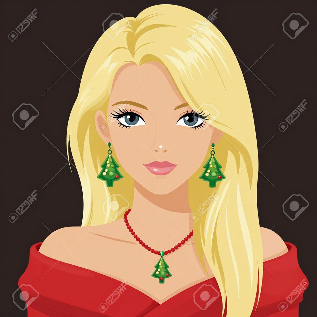 A young blonde woman with Christmas earrings and necklace Stock Vector - 11292330