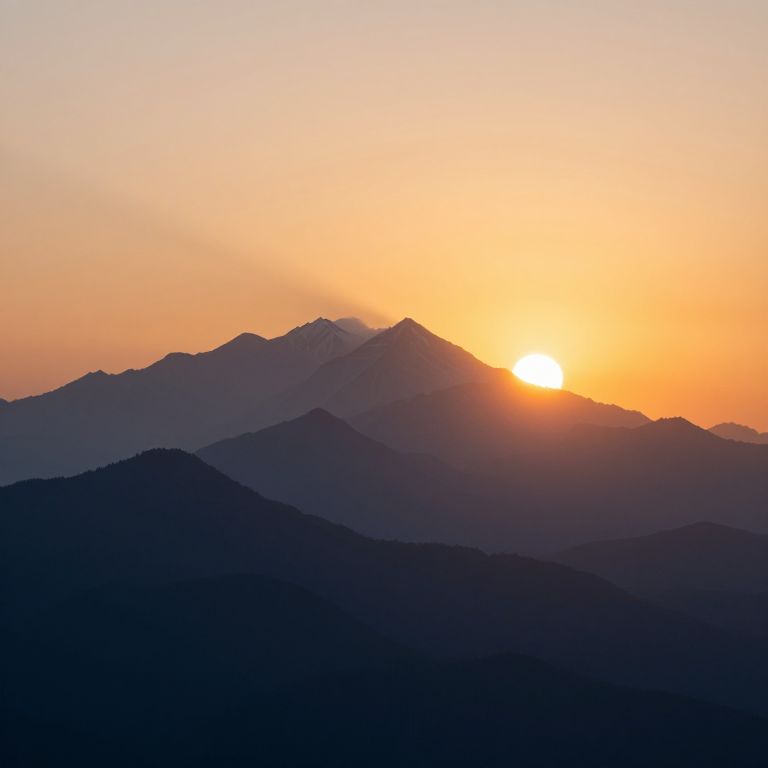 Mountains fold into origami shapes at sunset, unfolding only when no one watches.