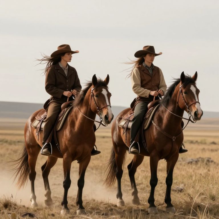 Riding the winds of the open frontier, two souls navigate the untamed expanse, their journey embodying the duality of freedom and uncertainty, as the earthy scent of leather and horse whispers tales of resilience and unspoken bonds.