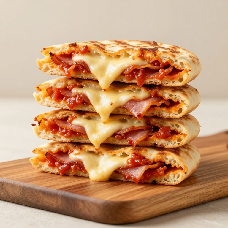 Stacked Golden-Brown Pizza Panini Halves