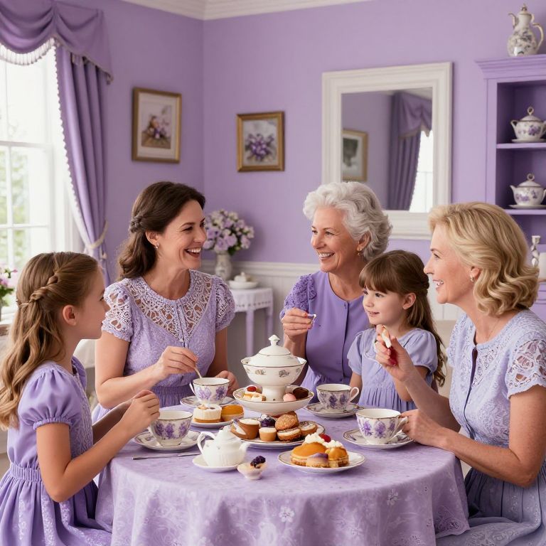 A vibrant tableau of familial warmth unfolds in the Lavender N Lace Tea Room, where laughter, shared stories, and the comforting aroma of freshly baked treats weave a tapestry of enduring love and connection.