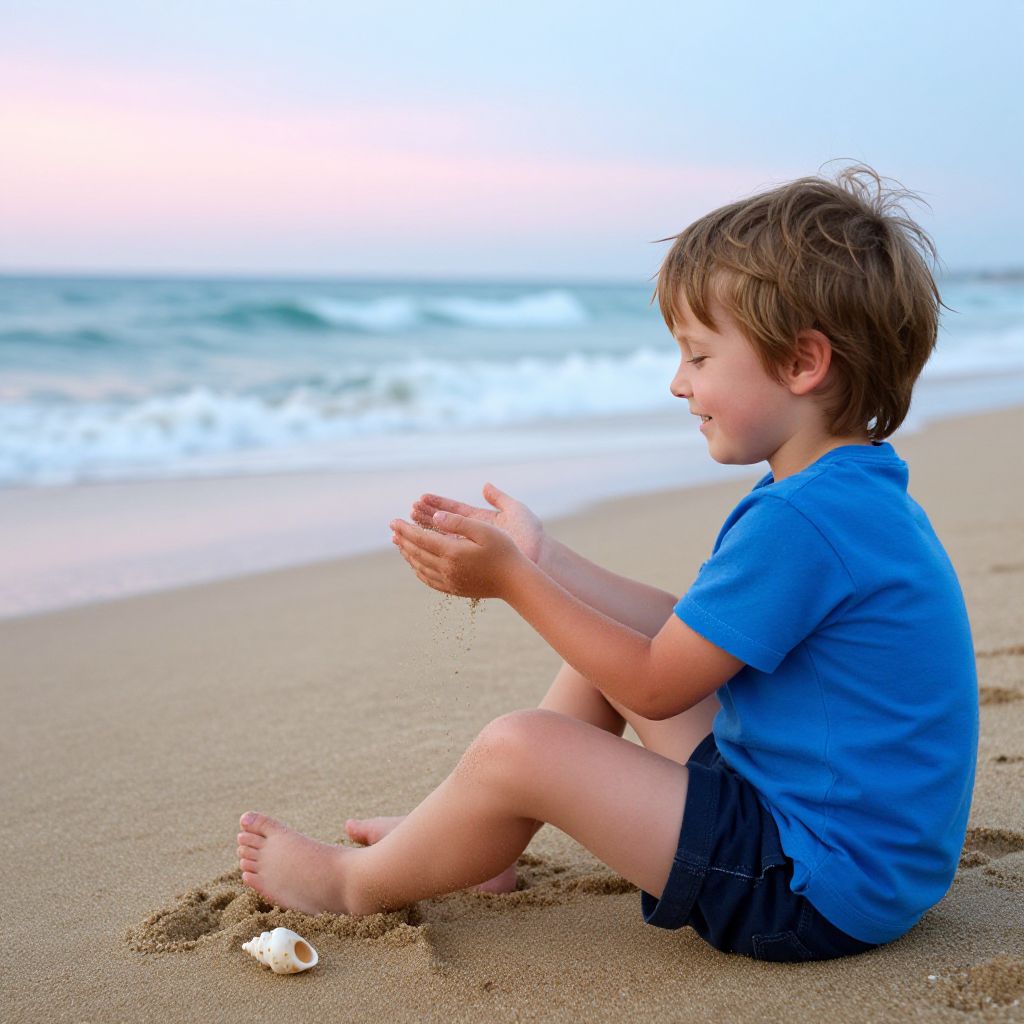 Little Boy Running on Beach Shoreline