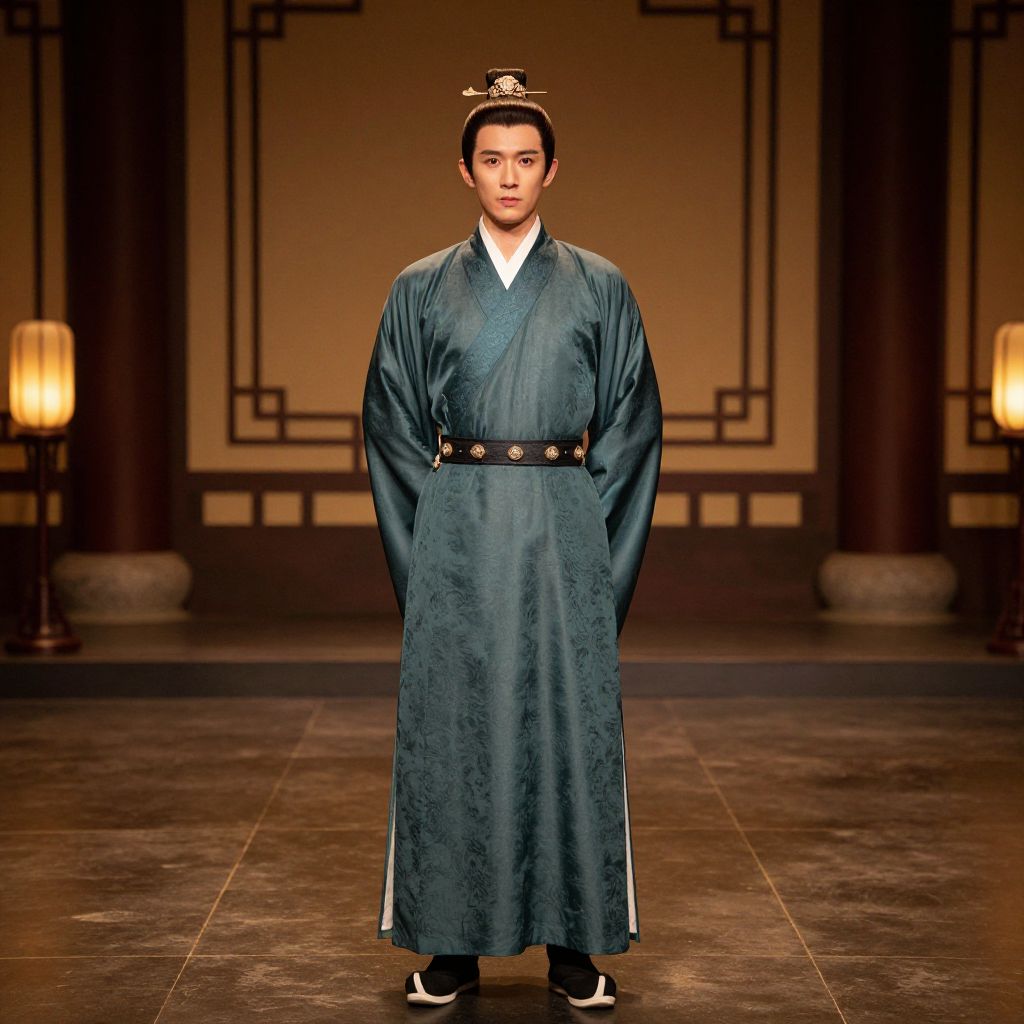 Costume Eve, man in a traditional chinese costume standing in a hall