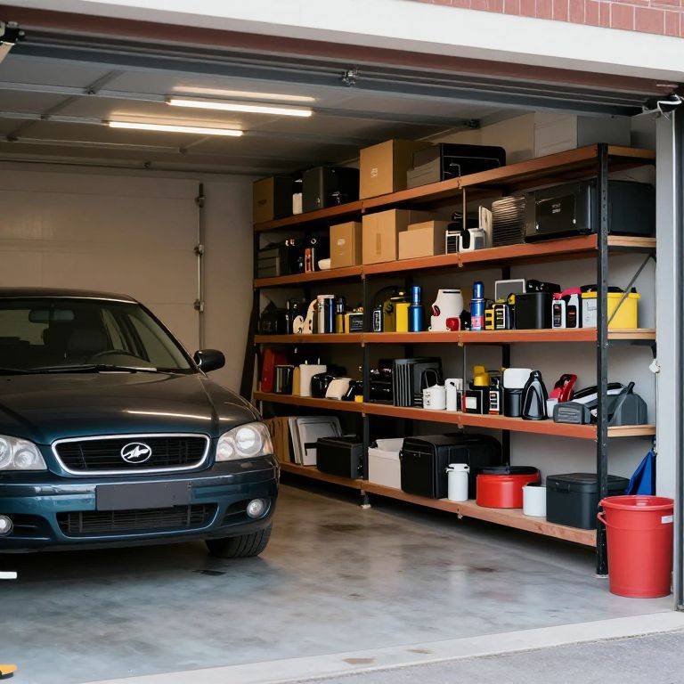 Organized Garage with Car and Shelves