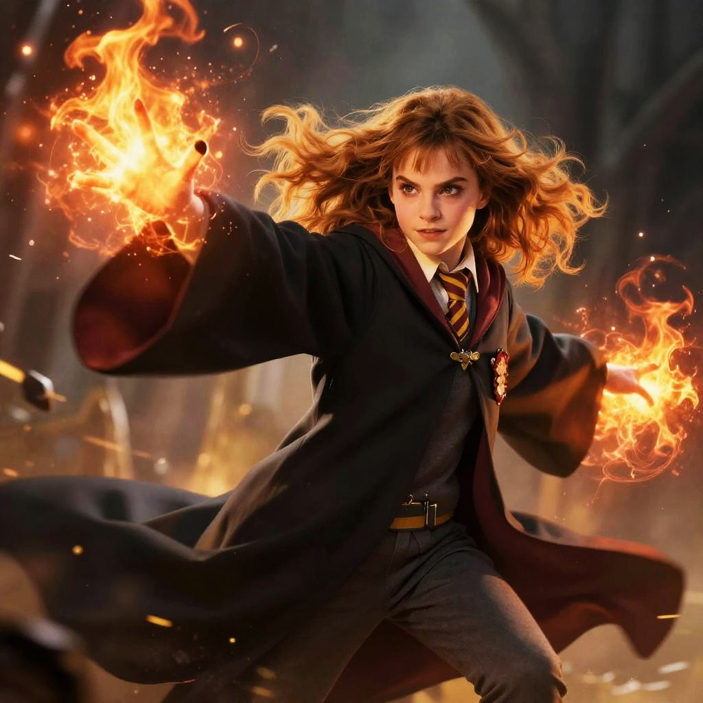 Fierce Hermione Casting Magical Spell