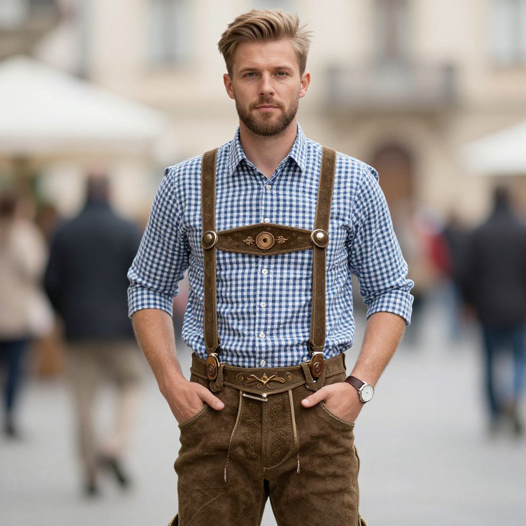 Stylish Male in Lederhosen Outfit