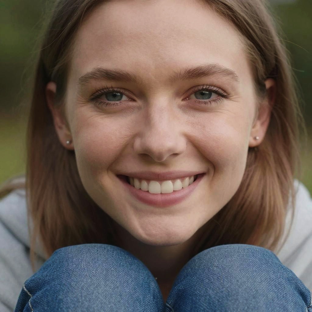 Depth of field, Finnish woman, detailed face, hoodie, jeans pants, smile, masterpiece, photography, realistic, close-up